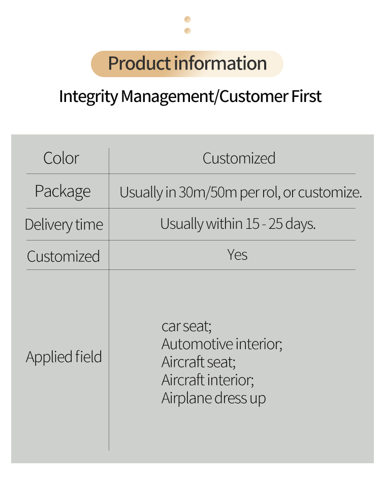 Developed with vehicle dedicated fire resistant technology the material can effectively restrain flame spread inside vehicles lowering potential safety hazards in unexpected situations. It matches the core safety configuration requirements of modern vehicle interior functional parts providing stable fire protection support for customized automotive upholstery production and improving overall vehicle internal safety level.